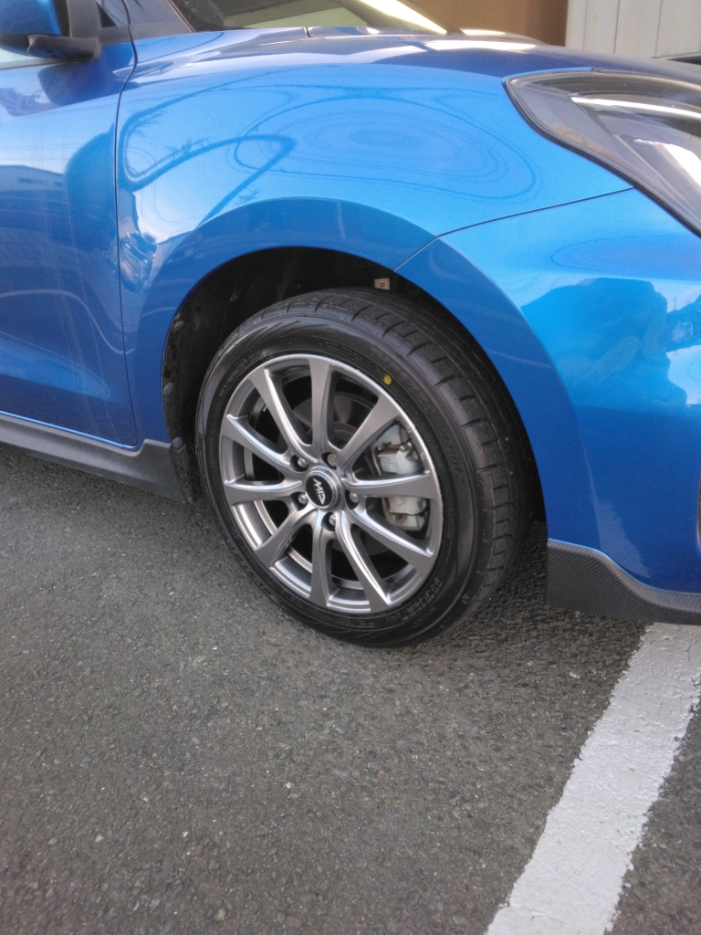インチダウン 車検・整備 | 2026.02.04 本日の画像はスイフトスポーツ。 義弟の車両です。 車検と共にタイヤとホイールを変更しました。 「 だんだん歳で、乗り心地を良くしたい 」との事でインチダウンをしました。 もともとは 45扁平 ですが 50扁平 になりタイヤサイド部が高くなりました。 乗り心地もソフトに、、、なったはず ( ´ ▽ ` )ノ タイヤやホイールも 落合自動車販売(株)までお気軽にご相談ください m(__)m