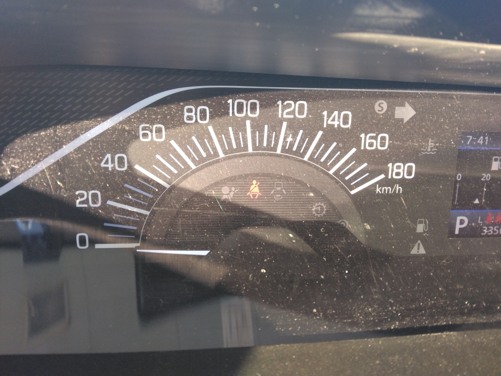 シートベルトリマインダー 車検・整備 | 2025.11.15 本日の画像は車両メーター。 光で見えにくいかも知れませんがシートベルト警告が点灯しています。 シートベルトリマインダーと呼ばれる警告灯ですが以前は運転席の シートベルトが装着されていないと点灯する仕組みでした。 現在の車両では助手席や後部座席のシートベルトもチェックしています。 助手席には重量物センサーが座面に付いていて重さを検知して点灯します。 よくお問い合わせがあるケースなんですが 「 シートベルトしているのに警告灯が点く!! 」と。 助手席に重さのある物を置いておくと「 人 」と車が勘違い。 シートベルトしてませんよ!と警告灯が点灯します。 5~10kgくらいの物から検知する様です。 買い物した荷物などを助手席に置くと帰りに警告灯がなんて事も。 安全の為の装置なんですが不便に思う事も、、、。 どうしても助手席に物を置く場合はシートベルトをしてあげても良いかも。 もちろん人が乗った場合はどの席でもシートベルトお忘れなく m(__)m