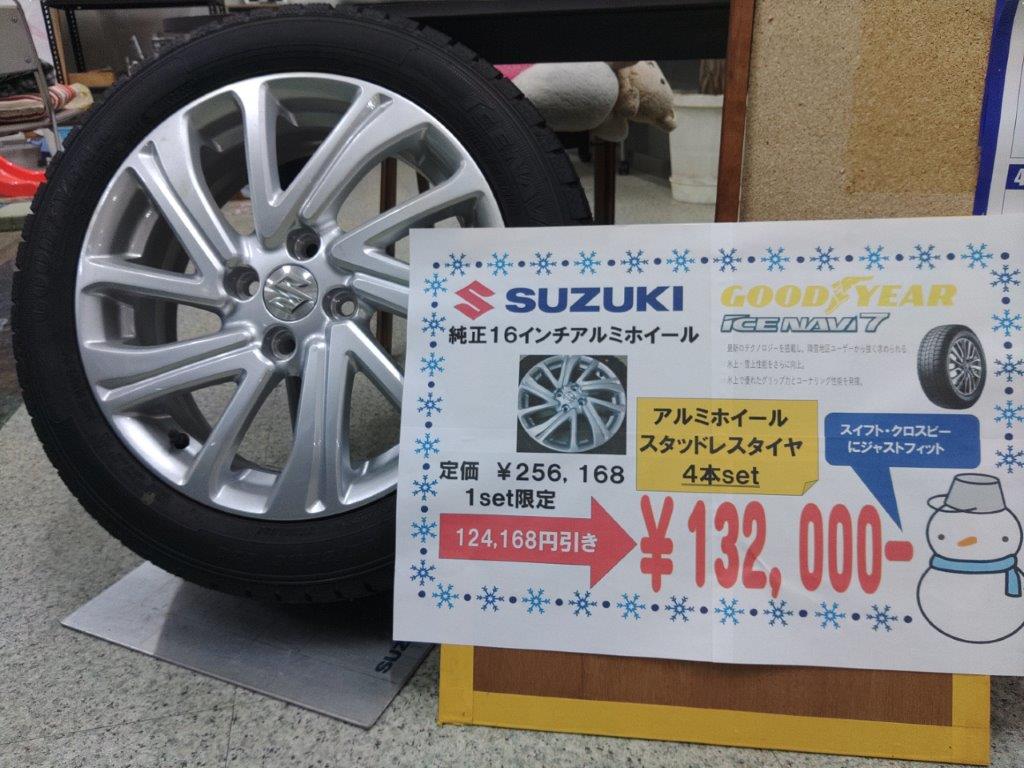 スタットレスタイヤ 車検・整備 | 2025.11.21 朝晩冷え込みが厳しくなってきて、冬が近づいてきました。 そろそろスタットレスタイヤの時期ですね、、、 ( ´ ▽ ` )ノ 現在、落合自動車販売㈱では、 大特価限定1セットのスタッドレスタイヤを販売しております。 スズキの純正アルミホイールつきです。 スイフトやクロスビーにお乗りの方にぴったりサイズです。 年末年始に旅行に行かれる方などいましたら、 この機会にぜひ (*^-^*) 気になる方はスタッフまで m(__)m