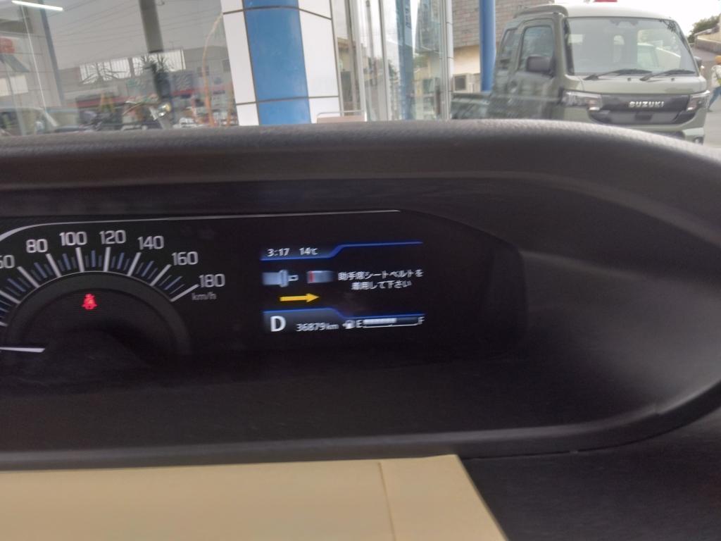助手席に!! 車検・整備 | 2026.02.27 本日の画像はソリオのメーター。 画像がぶれています、、、申し訳ありません (。-人-。) スイマセン 構内で動かしながら撮ったのでブレてしまいました。 助手席のシートベルトをしてない状態で警告されているんですが、 実は助手席には誰も乗っていないんです!! お化けでも、、、というわけではなく荷物を載せていまして。 助手席の座面には重さを感知するセンサーが搭載されています。 重めの荷物を置くと人が乗っているのにシートベルトしていないと車に警告を受ける。 こんなことがあります。 最近の車では「 助手席が~ 」とメーター内に表示されますが少し前のモデルでは シートベルトの警告をされるだけなので故障!?なんて言われてしまうことも。 荷物などを助手席に置く際はお気を付けを m(_ _)m